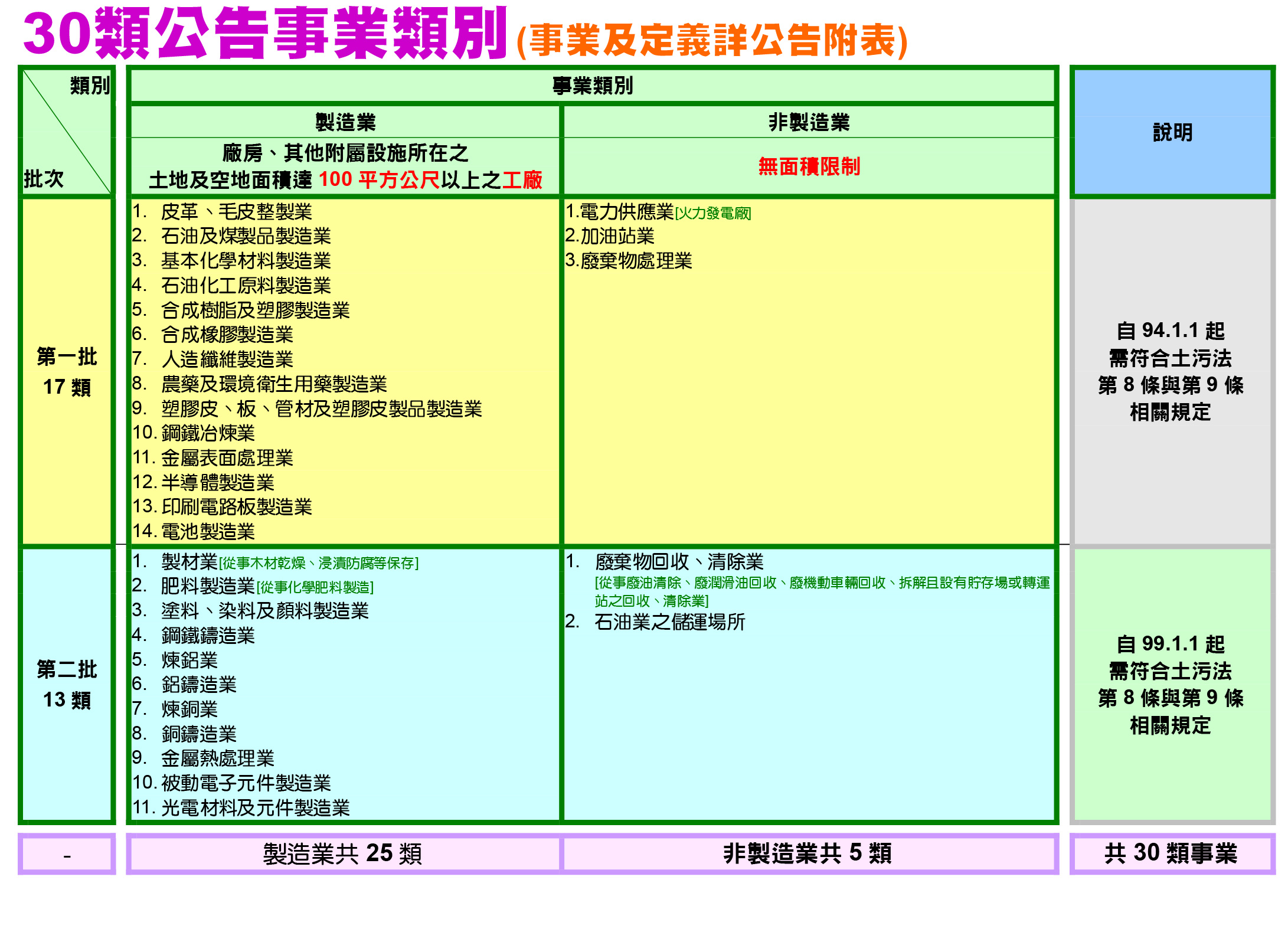 ◆土壤及地下水污染整治法第八條第一項之事業◆